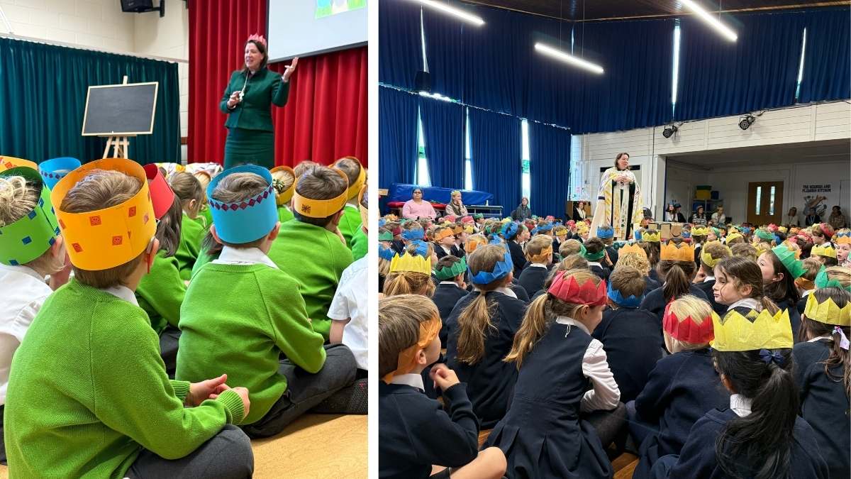 Bishop Rhiannon visited three schools across Bournemouth on Tuesday to help them celebrate Epiphany. Special acts of collective worship were held involving all ages, and each child was given a paper crown to help them think about the journey of the wise men who followed the star to the stable where Jesus was born. |